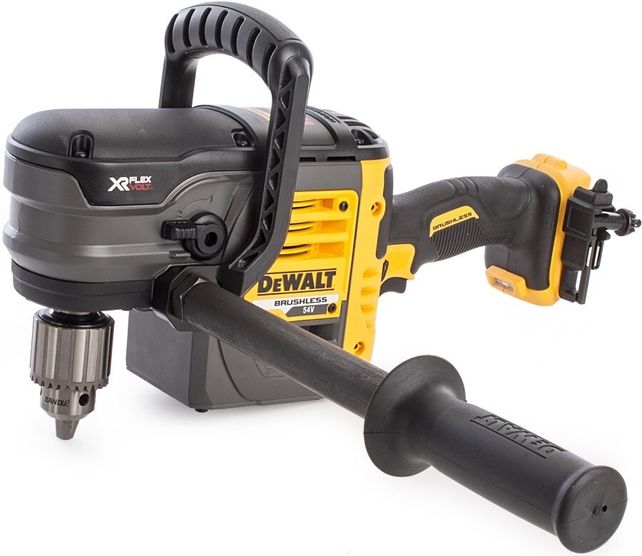 Аккумуляторная угловая дрель DeWalt DCD460N предназначена для сверления в труднодоступных местах. Дрель питается от аккумулятора XR Flexvolt 54 В (АКБ и ЗУ приобретаются отдельно). Инструмент подходит для работы с металлом, деревом и пластиком, незаменим при сборке мебели.