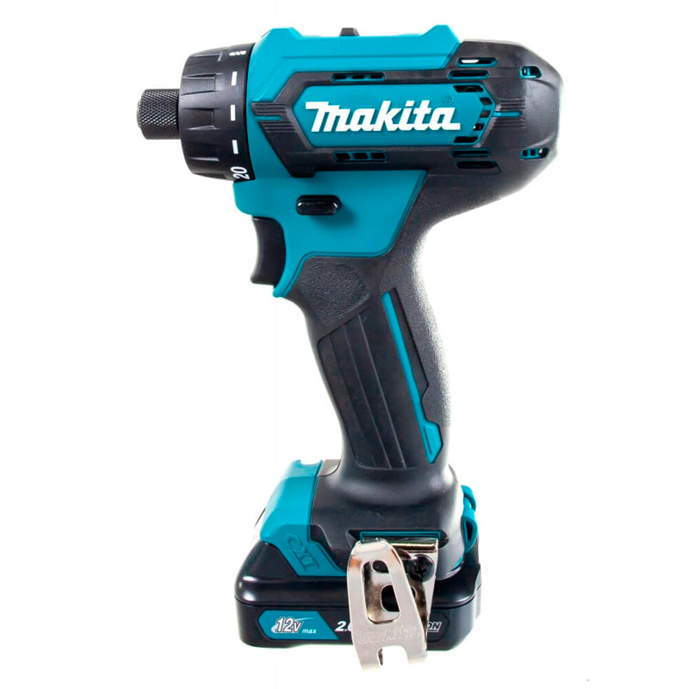 Шуруповерт аккумуляторный Makita DF033DWAE компактный и мобильный двухскоростной инструмент, работает от литий-ионного аккумулятора напряжением 10,8 В. Емкость аккумулятора 2 Ач. Предназначен для сверления материалов и вкручивания/выкручивания крепежа. Поставляется с двумя аккумуляторными батареями и зарядным устройством. Максимальный крутящий момент 30 Нм. Число ступеней крутящего момента 20+1. Максимальное число оборотов холостого хода 1700 об/мин. Оснащен подсветкой рабочей зоны и функцией реверса для быстрого освобождения застрявшей оснастки. Есть тормоз двигателя. Частоту вращения можно регулировать. Рукоять обрезиненная с нескользящей поверхностью. Тип патрона шестигранный ¼ HEX. Максимальный диаметр сверления металла 10 мм, диаметр сверления дерева 21 мм. В комплектацию входит кейс для хранения и транспортировки оборудования. Вес товара 1,1 кг.