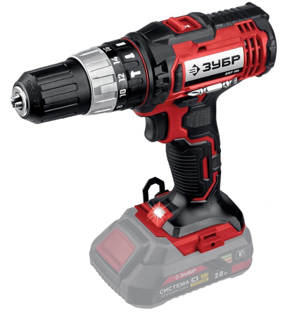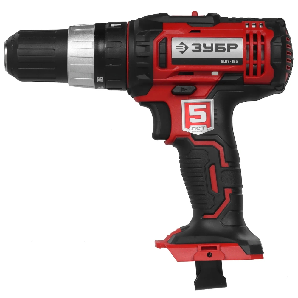 Аккумуляторная дрель-шуруповерт ЗУБР ДШУ-185 ударная (без акк, без з/у) - универсальный инструмент для сверления бетона, кирпича, камня и заворачивания метизов. Значительный крутящий момент на первой скорости позволяет выполнять работу со сверлами и крепежом больших диаметров, а высокие обороты на второй скорости - сверлить или выполнять работу быстрее.Также инструмент имеет возможность сверления плотных материалов специальной оснасткой таких как бетон, кирпич и камень, благодаря наличию удара.