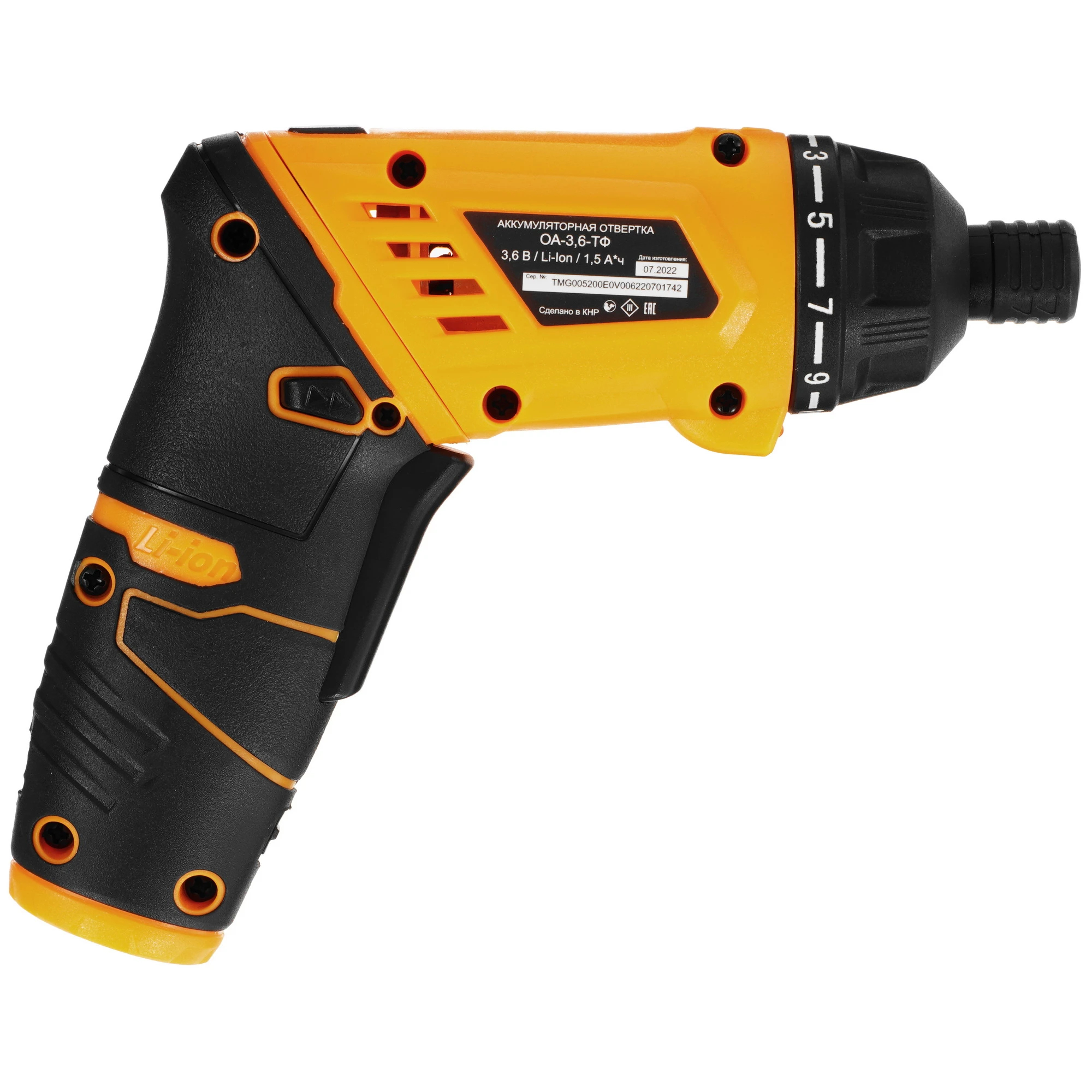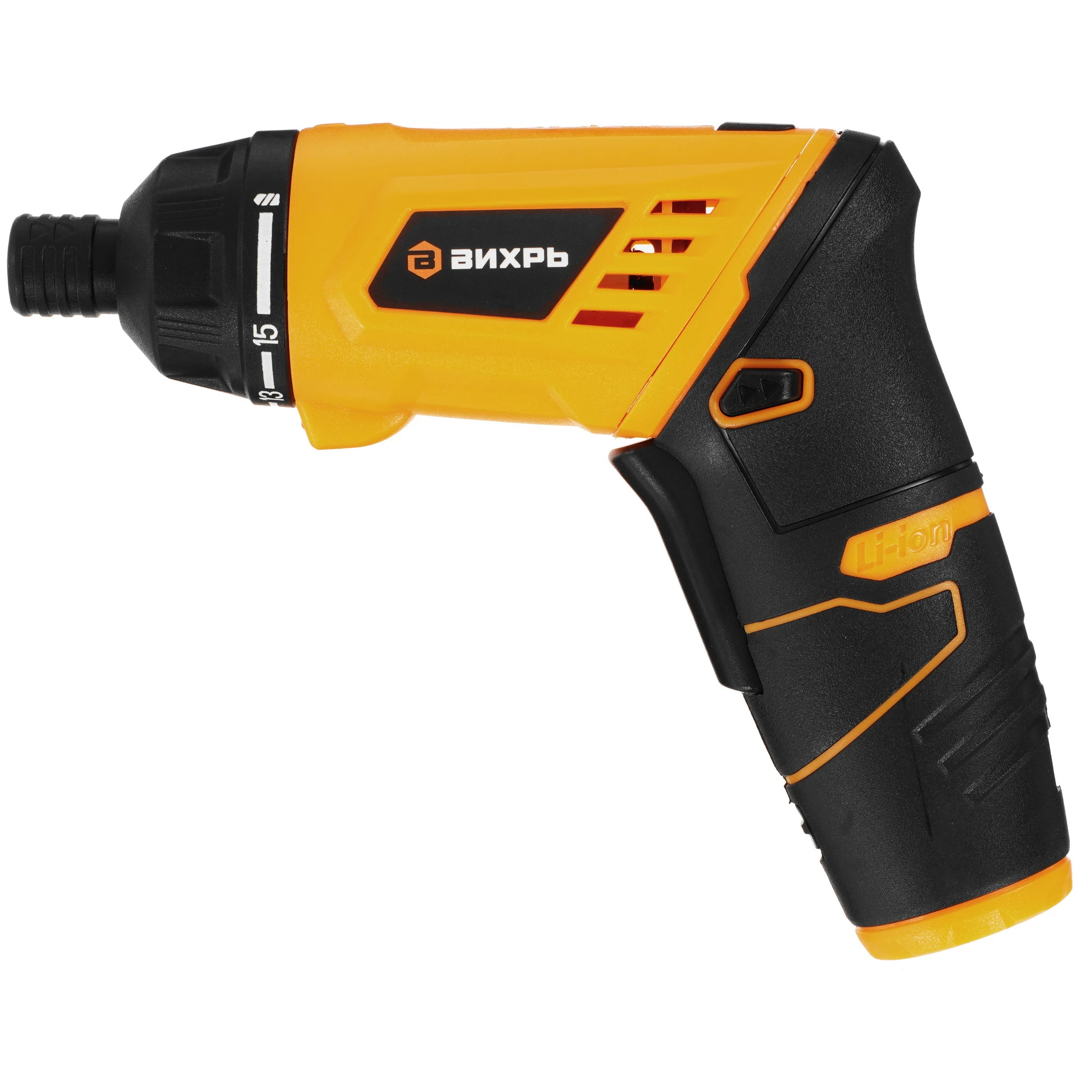 Аккумуляторная отвертка ручного типа Вихрь ОА-3,6-ТФ - это компактный инструмент, предназначенный для монтажа разнообразных крепежных элементов. Значение максимального крутящего момента составляет 5 Нм. В сочетании со скоростью вращения 250 об/мин это позволяет использовать прибор для решения ежедневных бытовых задач. Литий-ионный тип встроенного аккумулятора емкостью 1,5 А*ч обеспечивает высокую производительность работы. Время полного его заряда составляет 3 ч. Функция регулирования момента затяжки позволяет контролировать интенсивность воздействия в зависимости от используемого материала. Это особенно важно при сборке мебели.
