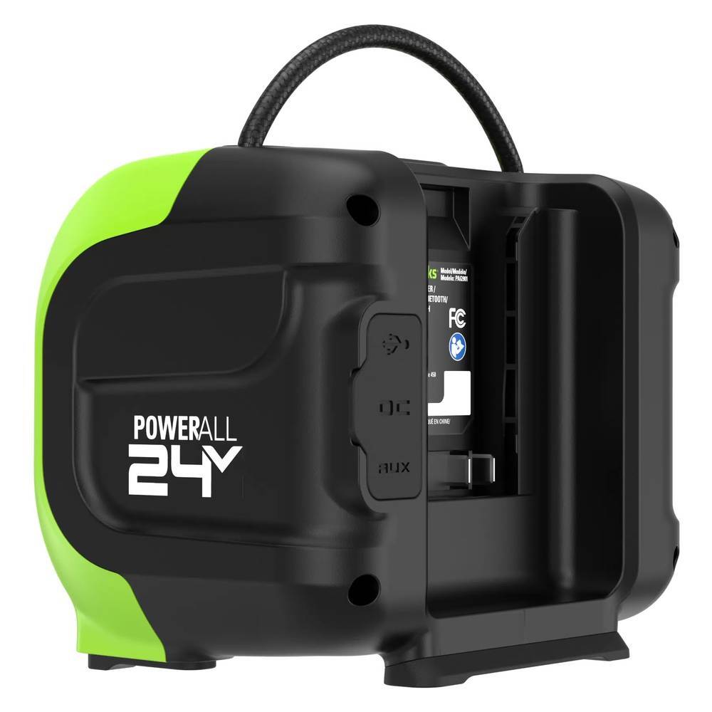 Питание от АКБ Greenworks POWERALL 24V или от сети 110-240V с помощью адаптера