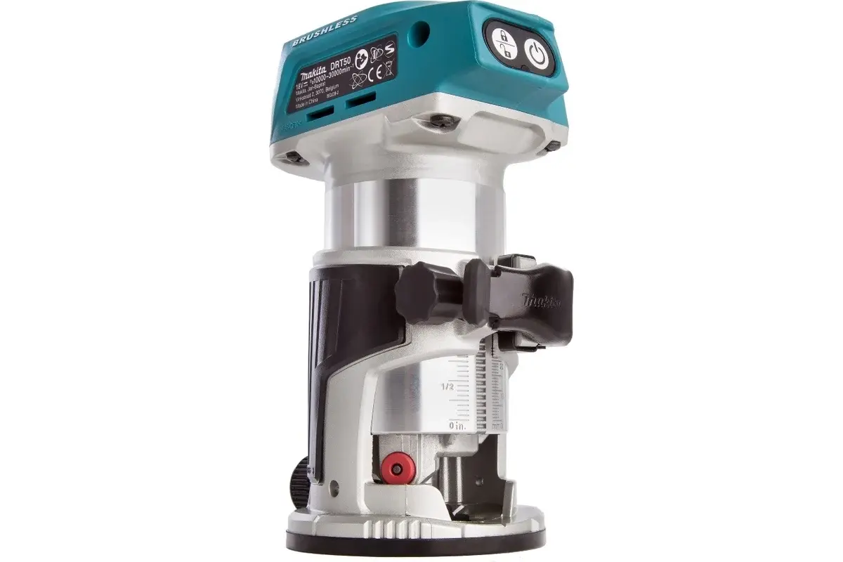 Фрезер кромочный Makita DRT50Z (б/акк,б/зу) универсальный и мощный аккумуляторный инструмент, удобный и простой в эксплуатации, работает от литий-ионной батареи напряжением 18 В. Предназначен для обработки деревянных заготовок и изделий из пластика. Совместим с аккумуляторами емкостью от 1,5 до 6 Ач. Фрезер оснащен надежным бесщеточным двигателем, который отличается долгим сроком службы. Имеет функцию плавного пуска. Цанговый патрон 8 мм. Подсветка рабочей зоны незаменима при недостаточной видимости. Число оборотов холостого хода от 10000 до 30000 об/мин, регулируется в зависимости от рабочей задачи. Максимальная глубина реза 40 мм. Вес товара 2 кг. Поставляется с кромочной базой, без аккумулятора и зарядного устройства.