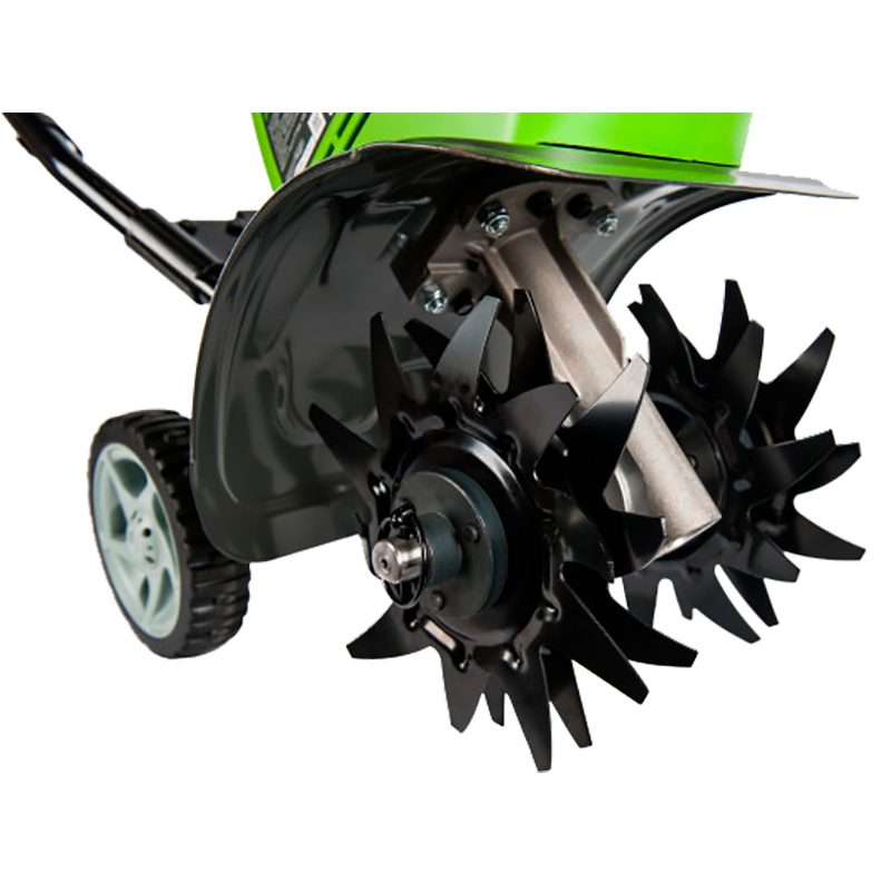 Аккумуляторный культиватор Greenworks 40В 27087VB предназначен для рыхления почвы на грядках, клумбах и в цветниках, также подойдет для работ в теплицах и в других местах с ограниченным пространством. Транспортировочные колеса облегчают перемещение агрегата по участку.