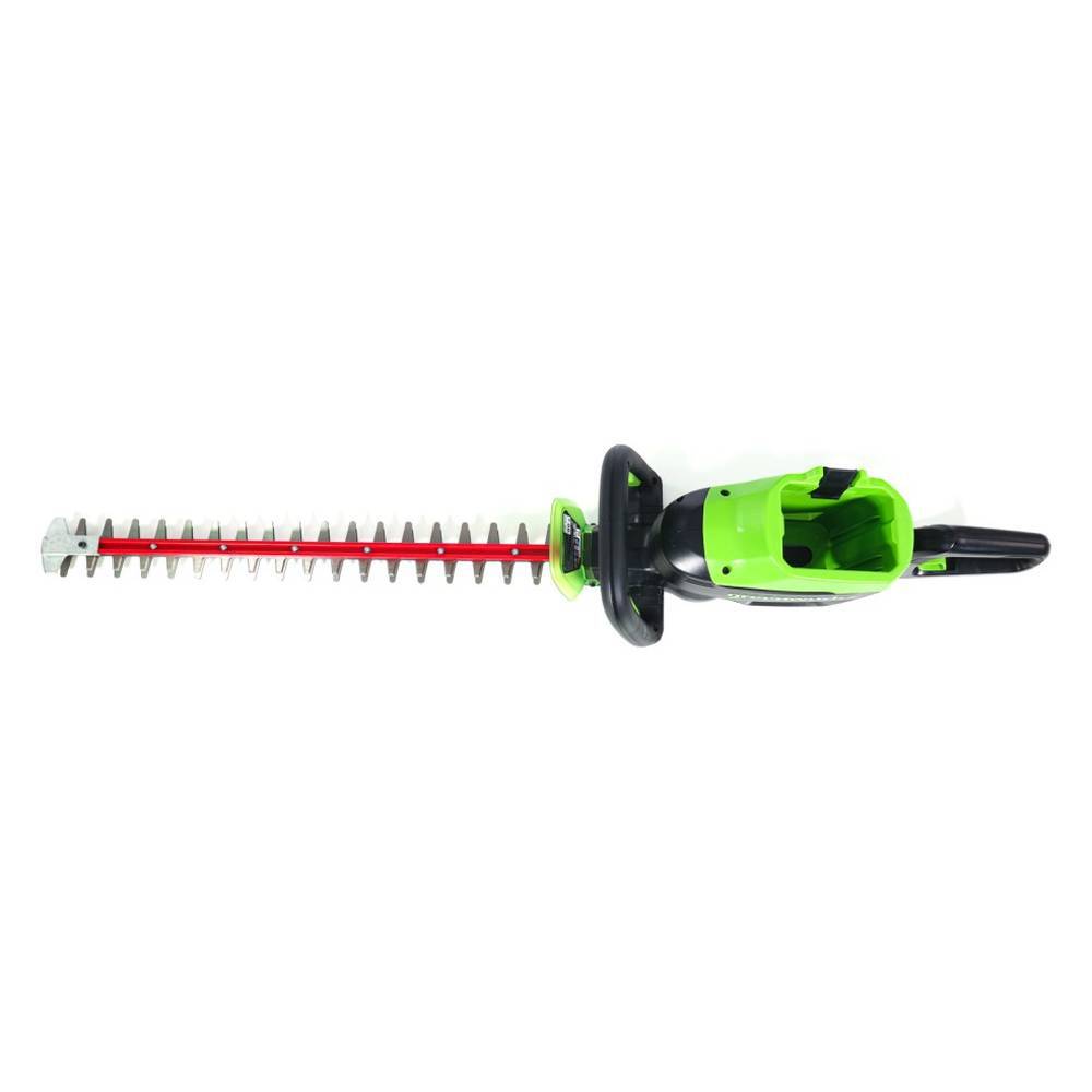 Аккумуляторный кусторез Greenworks GD60HT66 (без акк, без з/у) предназначен для ухода за живой изгородью и небольшими садовыми деревьями. Лезвие длиной 66см имеет алмазную заточку, а шаг среза составляет 28мм, что позволяет подрезать даже толстые ветви. Бесщеточный двигатель DigiPro позволяет инструменту развивать скорость до 3200 рез/мин. Благодаря поворотной рукоятке с углом поворота 180° можно с удобством обрабатывать живую изгородь со всех сторон.