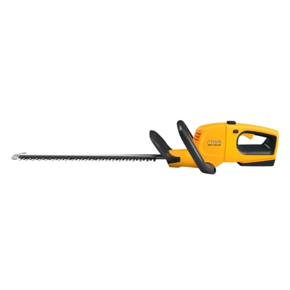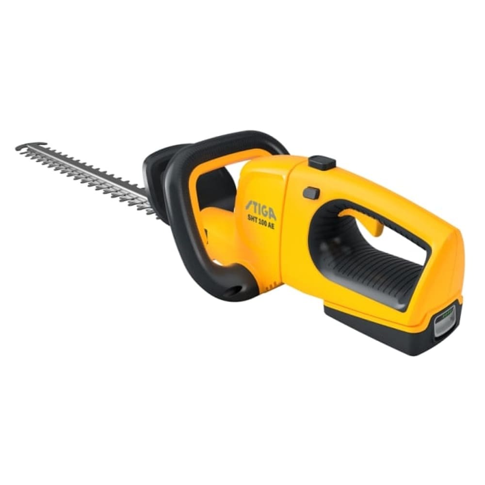 Кусторез аккумуляторный Stiga SHT 100 AE K это аккумуляторные ножницы для живой изгороди. Аккумулятор с напряжением 20 Вольт обеспечивает 40 минут работы без подзарядки. Модель оснащена регулируемой рукояткой с мягкой накладкой, которая поворачивается на 180° для работы в труднодоступных местах. На конце лезвия есть крючок-защита наконечника, которая предотвращает касание лезвия о стены и дорожки.
