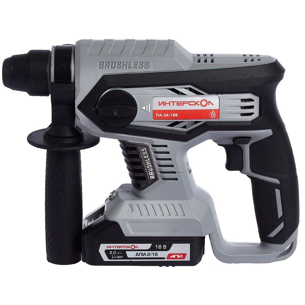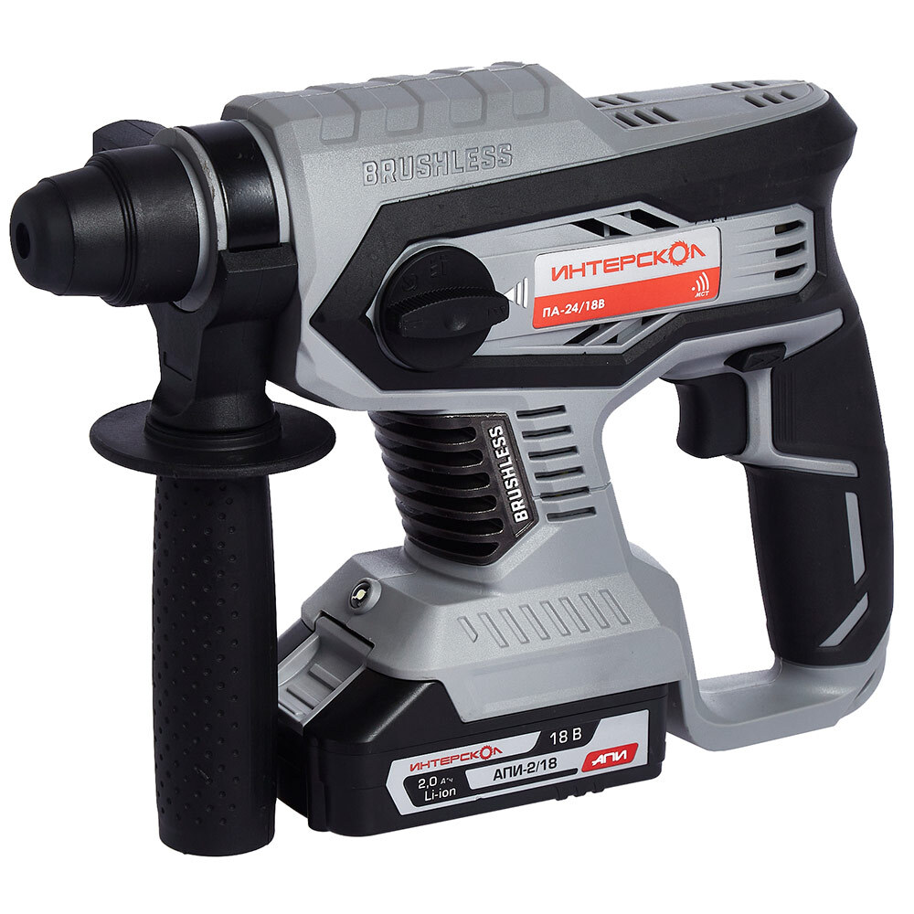 Перфоратор ИНТЕРСКОЛ ПА-24/18В (без акк, без з/у) для проделывания отверстий, штроб, выполнения отбойных работ в бетоне, кирпиче и камне c вентильным бесщеточным двигателем. Оснащается дополнительной рукояткой с ограничителем глубины бурения. Управление скоростью вращения и частотой ударов осуществляется нажатием на курок. Возможно использование в качестве дрели и шуруповерта при наличии соответствующей оснастки.