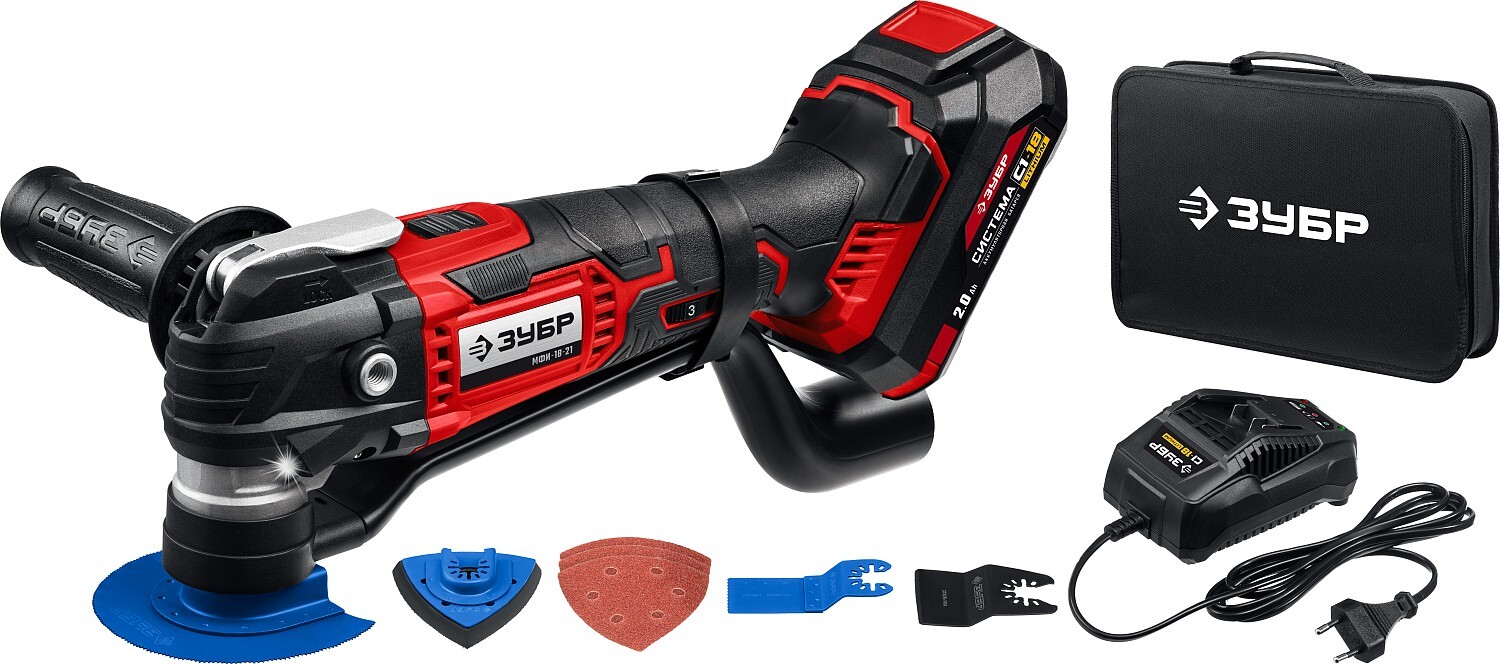 Аккумуляторный многофункциональный реноватор ЗУБР МФИ-18-21 (18 В) с аккумулятором 2 Ач обеспечивает точную резку, шлифование и другие строительные операции даже в труднодоступных местах и без доступа к электросети. Угол колебаний 3° и плавная регулировка частоты позволяют адаптировать инструмент под работу с деревом, металлом, пластиком и другими материалами. В комплекте — базовый набор насадок для немедленного старта и практичная сумка для хранения и транспортировки. Компактный, мощный и мобильный — идеален для профессионального ремонта, домашних задач и выездных работ, сочетая автономность, удобство и высокую производительность.