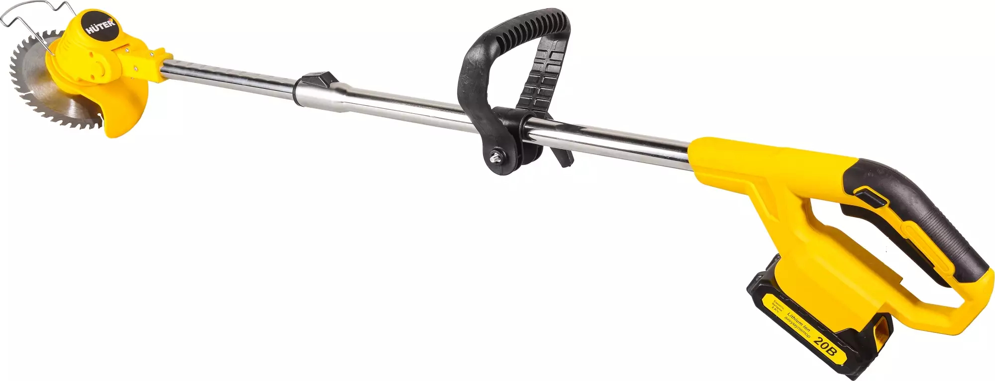 Аккумуляторный триммер Huter GET-20M-Li предназначен для кошения высокой и сухой травы, газона рядом с домом, а также агрессивных сорняков и дикой поросли кустарников. В штатной комплектации поставляются леска, нейлоновый и металлический нож, металлическая фреза. Полную автономность работы садового триммера обеспечивает аккумулятор Li-Ion 20 В/2 Ач. Аккумулятор и зарядное устройство входят в комплект поставки. Ширина кошения диском и леской 150 мм. Триммерная головка регулируемая по наклону, ручка телескопическая, и удобно настраивается под рост человека. Аккумуляторный триммер Huter GET-20M-Li отлично подойдет для загородного дома или дачи, в дополнение к основной колесной газонокосилке.
