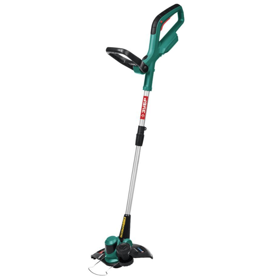 Нижнее расположение двигателя исключает приводной вал, что повышает надёжность, снижает вибрацию и увеличивает срок службы инструмента. Телескопическая складная штанга легко регулируется по росту и компактно складывается для удобного хранения и транспортировки — особенно удобно в межсезонье или при перевозке в багажнике.