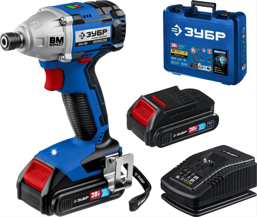 Аккумуляторный винтоверт ЗУБР Профессионал GVB-250-22 ударный из профессиональной линейки — это идеальный инструмент для работы с крупным и высоконагруженным крепежом. Благодаря высокому крутящему моменту, ударному механизму и передовому бесщеточному двигателю, он с лёгкостью справляется с самыми сложными задачами: от монтажа металлоконструкций до сборки каркасов и ремонта техники.