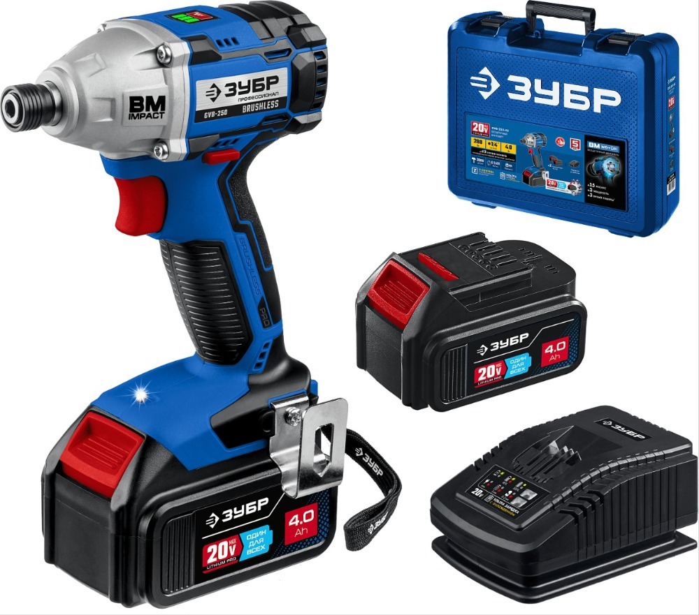 Аккумуляторный винтоверт ЗУБР Профессионал GVB-250-42 ударный из профессиональной линейки — это идеальный инструмент для работы с крупным и высоконагруженным крепежом. Благодаря высокому крутящему моменту, ударному механизму и передовому бесщеточному двигателю, он с лёгкостью справляется с самыми сложными задачами: от монтажа металлоконструкций до сборки каркасов и ремонта техники.