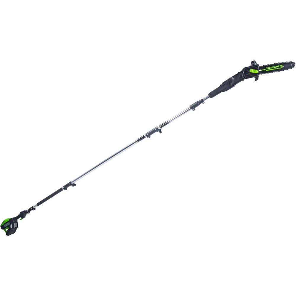 Аккумуляторный высоторез Greenworks GD82PS25 (без акк, без з/у) для подрезки ветвей и сучьев на высоте до 6 метров. Оснащен бесщеточным двигателем, шиной 25см и 4-х секционной металлической штангой.