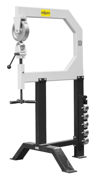 Английское колесо – специальный роликовый вытяжной станок предназначенный для формовки листового металла (из малоуглеродистой стали или эквивалентной стали). Обрабатываемая металлическая заготовка протягивается между верхним и нижним роликами, она становится длиннее и тоньше. В то же время направляющий ролик вдавливается в металл, изгибая заготовку. За счет изменения количества и типоразмера направляющих роликов можно получить различные контуры. Изготовлен из чугуна и стали и обеспечивает минимальное отклонение обрабатываемой детали вовремя операция формования. Роликовый вытяжной станок может придавать изогнутую форму листам из мягкой стали до 1,2мм и алюминия толщиной приблизительно до 1,9 мм. Часто используется для калибровочных задач (улучшение качества поверхности изгиба на заготовке), после работ на таких станках как Шринкеры и Стретчеры.