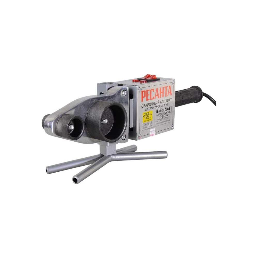 Компактный сварочный аппарат для пластиковых труб Ресанта АСПТ-2000К используется для соединения элементов полимерных трубопроводов диаметром 20, 25, 32, 40, 50, 63 мм. Мощность паяльника 2000 Вт обеспечивает быстрое достижение необходимой температуры нагревательного элемента. Автоматический термостат поддерживает установленные показатели. Рабочая температура варьируется от 50° до 300° C. Оптимальное ее значение, как и время плавления, зависит от диаметра трубы.АСПТ имеет простую и надежную конструкцию. Парные насадки обеспечивают муфтовый тип сварочных работ. Антипригарное покрытие из тефлона защищает их от износа, предотвращает прилипание расплавленного полипропилена. Быстросъемная подставка позволяет работать не только на весу, но и размещать паяльник на поверхности в перерывах. Световые индикаторы указывают на режим нагрева, оповещают о включении. Кабель питания подключается к однофазной сети.Сварочный аппарат для пластиковых труб Ресанта АСПТ-2000К создает герметичное диффузное соединение отопительных трубопроводов и водопроводных систем из полипропилена. Удобная прорезиненная рукоятка отвечает требованиям безопасности при работе с электрическим током. Дополнительно в комплектацию входят отвертка и шестигранный ключ. Для удобства хранения и транспортировки предусмотрен металлический кейс.