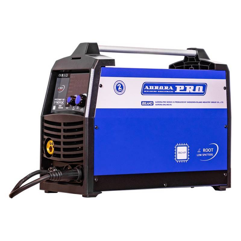 Аппарат сварочный инверторный Aurora Pro SPEEDWAY 165 SYNERGIC полуавтомат - однофазный полуавтомат из линейки профессиональных инверторов AuroraPRO. Универсальный аппарат для работы с чёрной сталью MIG/MAG, для полуавтоматической сварки порошковой самозащитной проволокой NO GAS, для ручной дуговой сварки штучным электродом MMA, а также для аргонно-дуговой сварки на постоянном токе TIG DC. Полуавтомат имеет полностью синергетическое управление параметрами сварки с помощью всего одной рукоятки с возможностью моментальной коррекции напряжения дуги и индуктивности. К аппарату возможно подключение Spool GUN-горелок с помощью специального разъёма.