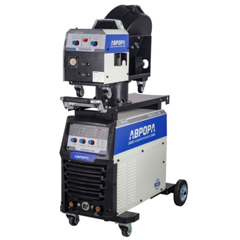 Аппарат сварочный инверторный Aurora ПРОГРЕСС 350 полуавтомат - 3х фазный инвертор для полуавтоматической сварки в среде инертного/активного защитного газа MIG-MAG и для ручной дуговой сварки штучным электродом MMA. Аппарат выполнен в корпусе "декомпакт" со съёмным подающим механизмом. Рекомендованный тип катушек проволоки D200 и D300 (5-20кг). Мощный подающий механизм предназначен для работы с горелками длиной до 5 метров. Тележка с подставкой под баллон и высокая компоновка аппарата существенно облегчают работу сварщика. Важной особенностью аппарата можно назвать высокую производительность. Ток длительной нагрузки источника при +40С составляет 270А. Это значит, что при данной температуре и значении рабочего тока аппарат не перегреется и не уйдёт в защиту даже при длительной непрерывной работе. Аппарат сварочный инверторный Aurora ПРОГРЕСС 350 полуавтомат может быть настроен сварщиком для работы в ручном или синергетическом режиме управления. Честные характеристики аппаратов АВРОРА помогут справиться с любой сварочной задачей.