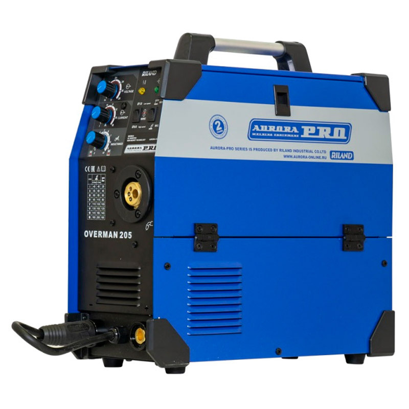 Инверторный полуавтомат AuroraProOverman 205 Mosfet предназначен для MIG/MAG сварки, а также для сварки штучным электродом MMA. Аппарат может использоваться для сваркипроволокой с самозащитой.