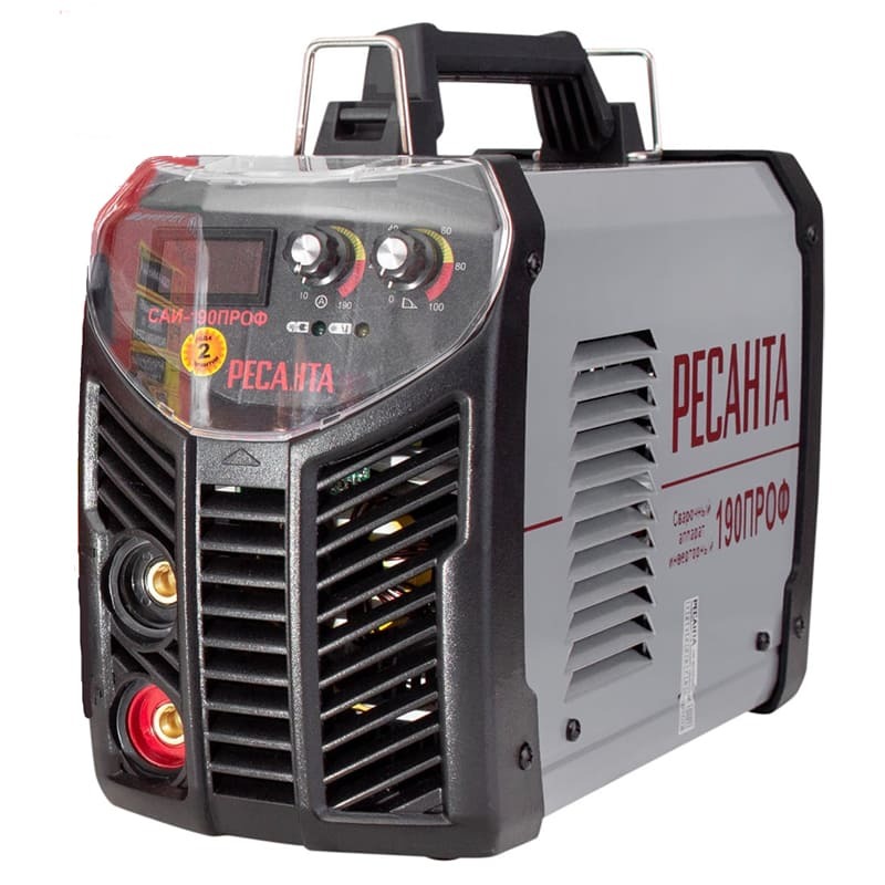 Сварочный аппарат РЕСАНТА САИ-190ПРОФ относится к классу профессиональных аппаратов, предназначен для использования на производстве. Инвертор подходит для ручной электродуговой сварки покрытым электродом диаметром до 5мм. Регулятор сварочного тока на передней панели позволяет выставить нужный ток в зависимости от диаметра электрода. Кроме того, аппарат оснащен регулировкой форсажа дуги. Цифровой дисплей наглядно отображает параметры сварочного тока. Аппарат защищен от перегрева и оснащен системой принудительной вентиляции для безопасной работы и долгого срока службы. Благодаря силовым разъемам сварочные кабели можно быстро и надежно подключить без потери тока, а также исключить нагрев в местах контакта. Автомат, установленный вместо выключателя «Сеть», позволяет работать в незащищенных сетях со слабой проводкой. Функция корректора коэффициента мощности («PFC») помогает сохранить ток при нестабильном входном напряжении сети. За счет этой опции достигается широкий диапазон входного напряжения сети 100 – 260В (при диапазоне 140-260 для линеек САИ ПН и САИ). Функция «ARC FORCE» (форсаж дуги) регулируется. Рукоятка и петли для крепления ремня позволяют переносить аппарат в руке и на плече.