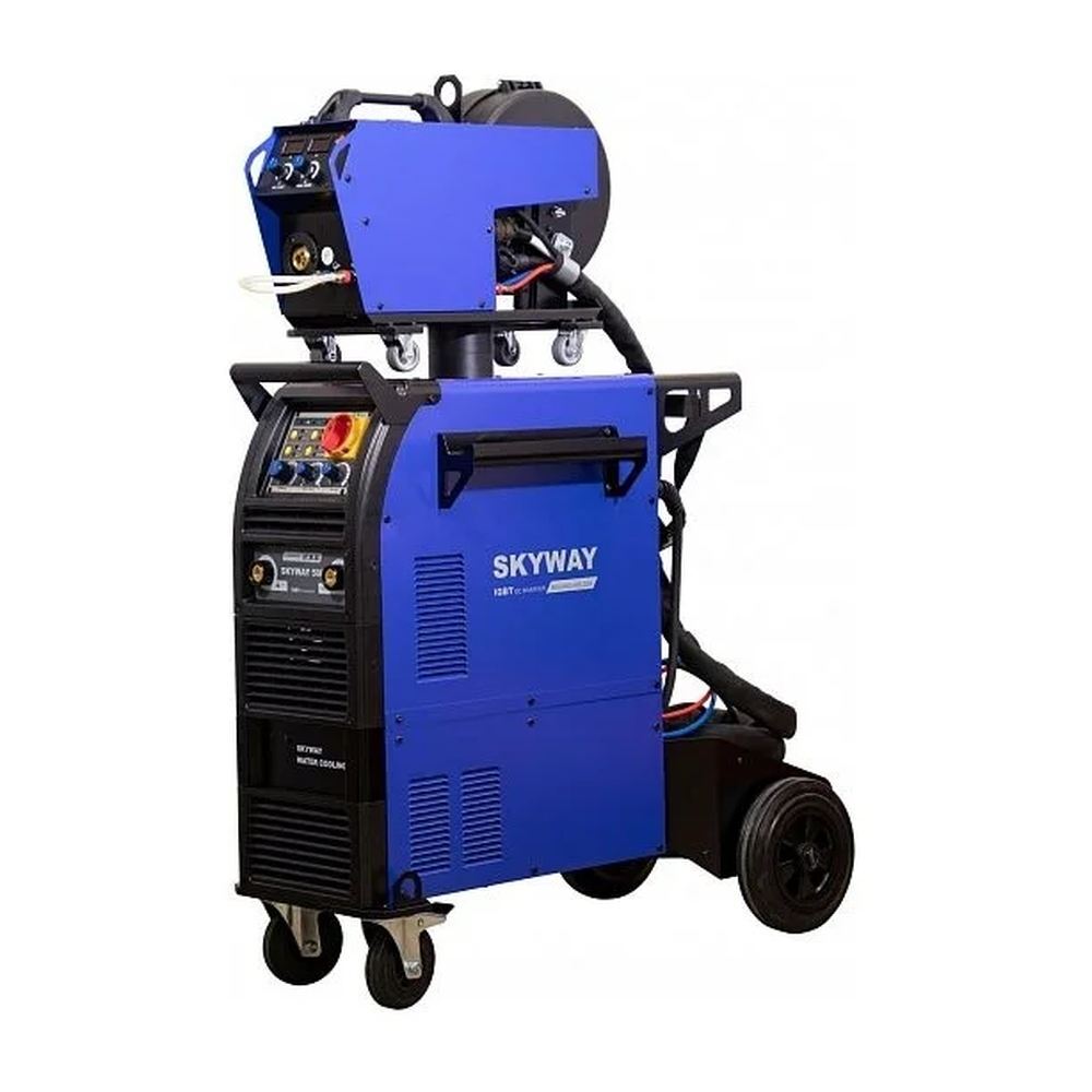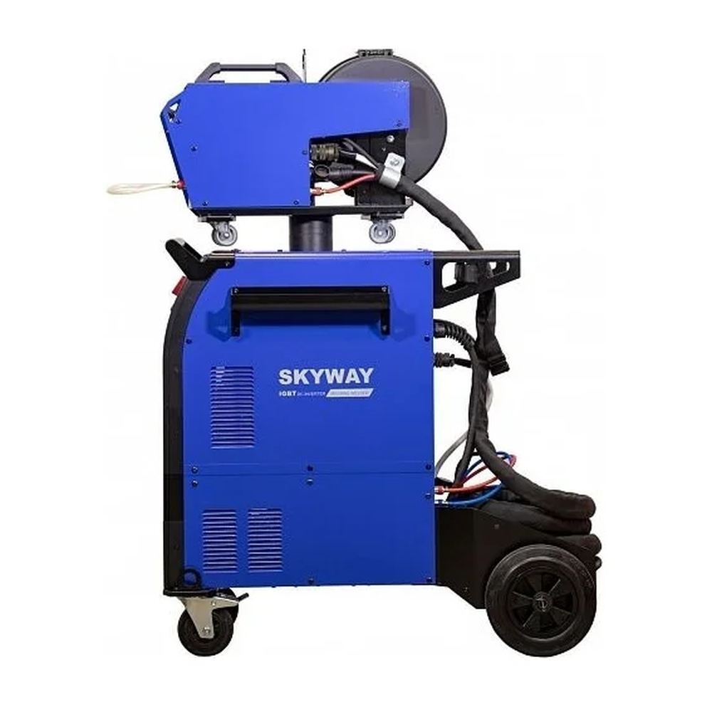 Автомат сварочный Aurora SKYWAY 500 полуавтомат (00021849) – 3-х фазный инвертор для полуавтоматической сварки в среде инертного/активного защитного газа MIG-MAG и ручной дуговой сварки штучным электродом MMA, - как с источника так и с выносного подающего механизма. Тележка с подставкой под баллон, высокая компоновка аппарата, встроенная станция охлаждения, подающий механизм "декомпакт" в базовом комплекте поставки - все эти моменты существенно облегчают работу сварщика и значительно увеличивают время непрерывной работы аппарата. SKYWAY – это передовая технология инверторного блока IGBT, отличные сварочные характеристики и превосходная эргономика управления.