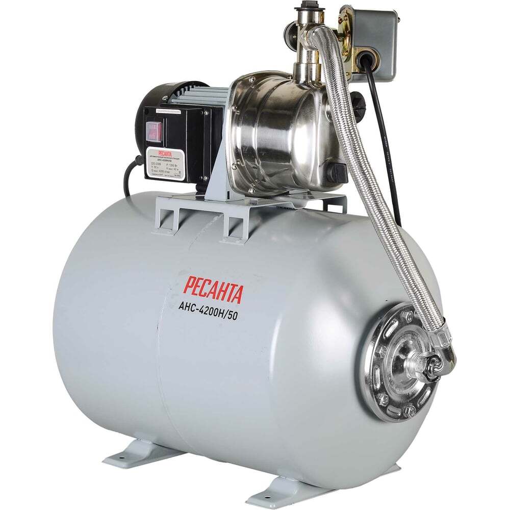 Ресанта АНС-4200Н/50 – автономная насосная станция служит для водоснабжения домов и фермерских хозяйств. Она функционирует полностью автоматически, обеспечивая поддержание постоянного давления в системе. Станция представляет собой единую конструкцию, состоящую из электронасоса мощностью 1.2кВт, гидроаккумулятора ёмкостью 50л и специального реле давления с защитой от холостого хода. Для контроля давления на агрегате установлен манометр.Насос модели Ресанта АНС-4200Н/50 поверхностный, с функцией самовсасывания, что позволяет подавать воду из ближайших водоёмов или небольших колодцев. Глубина всасывания – 9м. Объём перекачиваемой воды – 4200л/час. Напор – до 42м. Максимально допустимая концентрация твёрдых включений в воде 150 г/м³. Насосная часть электродвигателя модели Ресанта АНС-4200Н/50 выполнена из высококачественной нержавеющей стали. Для устойчивости во время работы и исключения вибрации в автономной насосной станции предусмотрены ножки с отверстиями для крепления к полу. Параметры сети электропитания станции – 220В, 50Гц.Модель Ресанта АНС-4200Н/50 может обеспечивать снабжение водой:до четырех открытых водозаборных точек, при заборе с глубины до 5м,при заборе с глубины до 6м станция обеспечит водоснабжение до трех открытых водозаборных точек,при заборе с глубины до 7м и станция обеспечит водоснабжение до двух одновременно открытых точек.Все это при длине магистрали до 5 м.