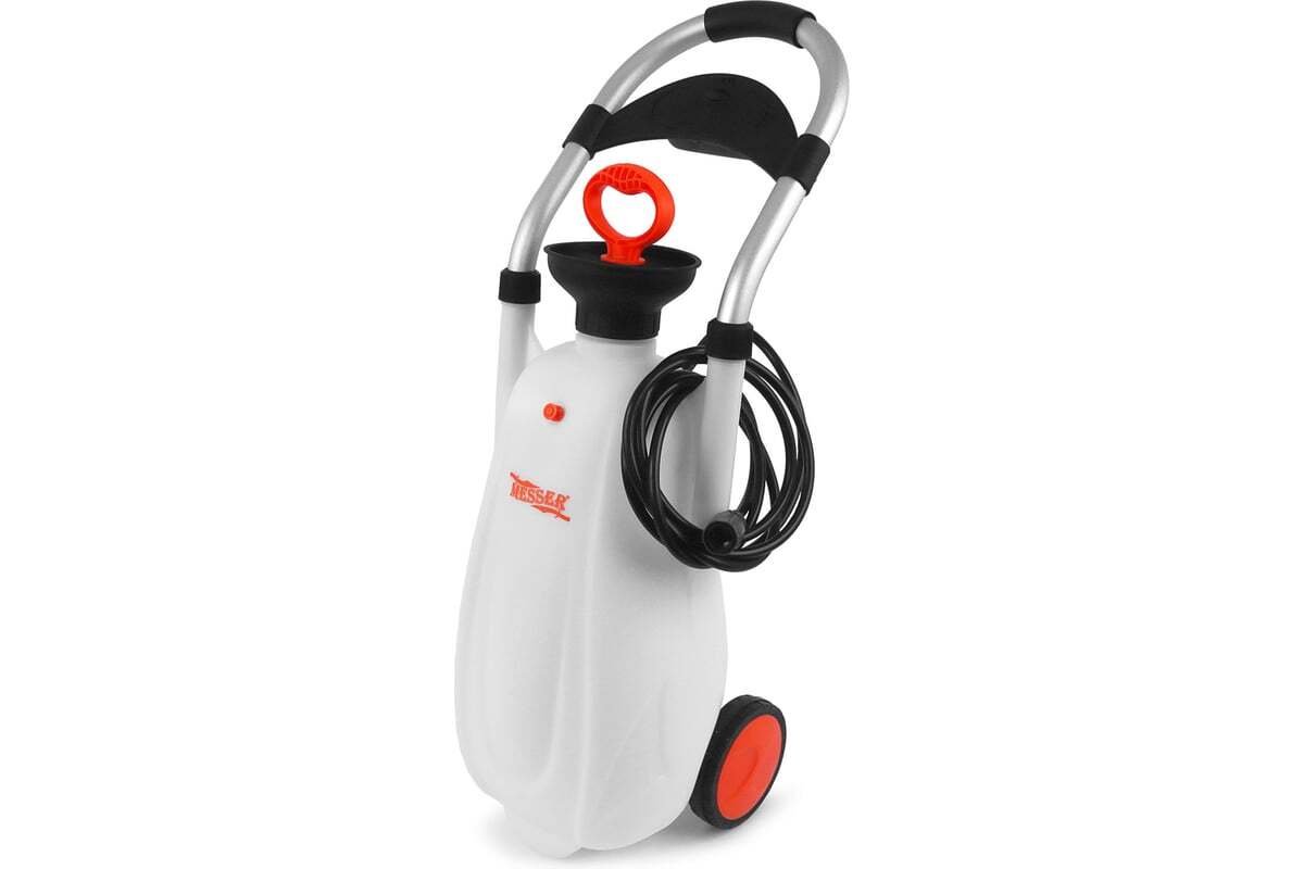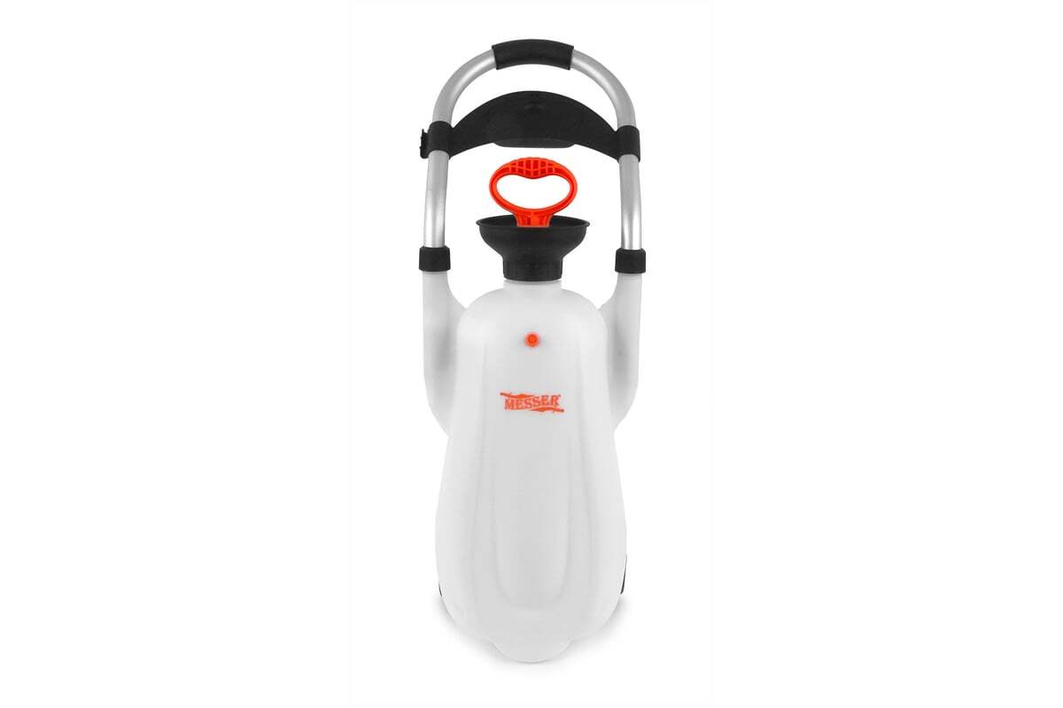 Бак для подачи воды MESSER MWT16 – профессиональный инструмент, который используется при алмазном бурении или резке различных твердых материалов при ремонте или строительстве. Бак и нагнетатель изготовлены из высокопрочного пластика. Заливная горловина для воды имеет удобную форму в виде воронки. Для обеспечения мобильности при проведении работ бак оснащен колесами и съёмной ручкой с отсеком для хранения мелочей. Подача воды осуществляется путем создания избыточного давления в баке с помощью ручного насоса. Входящий в комплект шланг длиной 3,2.м. позволяет оператору подавать воду непосредственно в зону сверления при выполнении работ даже у потолка.