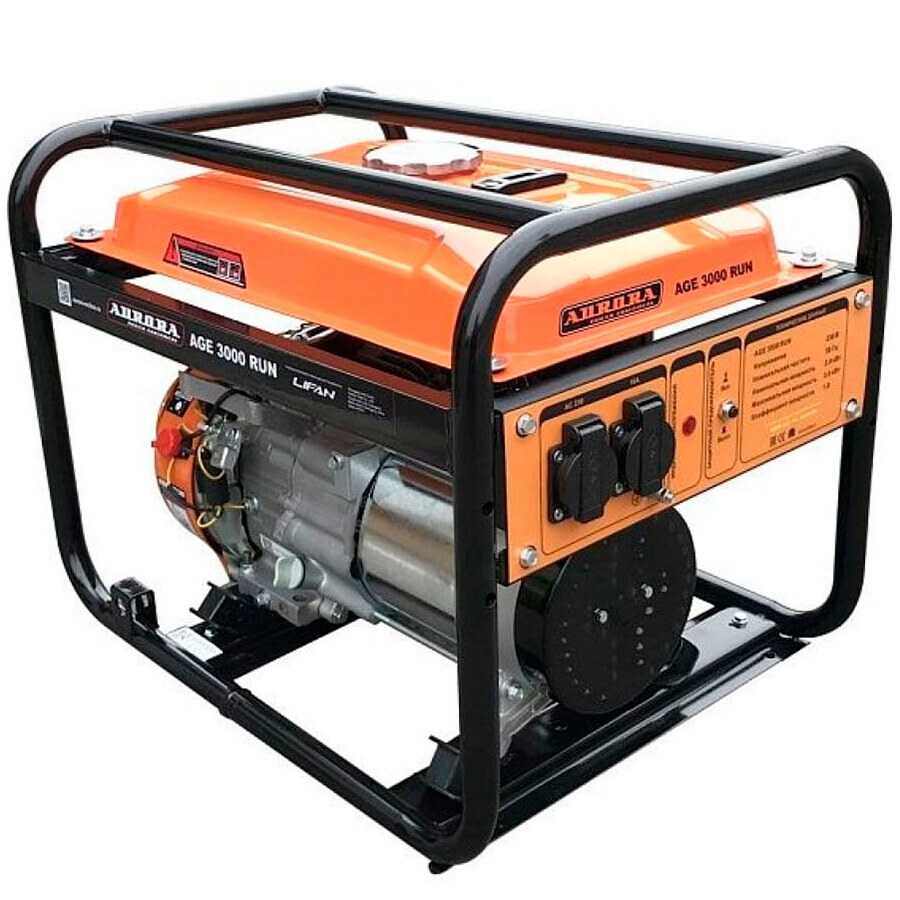 Бензиновый генератор Aurora AGE 3000 RUN для автономного энергоснабжения дорожных бригад, строительных и ремонтных подразделений, обеспечения электричеством загородных домов, дач и т.д. Оснащается одноцилиндровым 4-х тактным бензиновым двигателем с верхним расположением клапанов (OHV). Поршни мотора гильзованы чугунными вставками. Автоматический стабилизатор (AVR) предотвращает скачки напряжения при изменении числа оборотов двигателя. Устройство контролирует значение напряжения для нормальной работы всего оборудования подключенного к генератору при увеличении или уменьшении нагрузки. Датчик масла контролирует объём смазки в картере двигателя. При падении уровня – электрическая сеть размыкается и глушит мотор, для того, чтобы уберечь владельца от расходов на дорогостоящий ремонт.