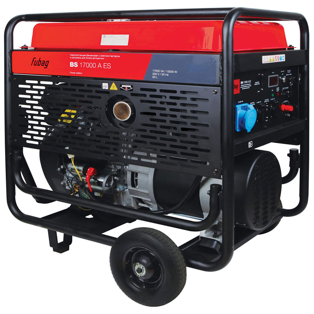 Бензиновый генератор Fubag BS 17000 А ES для работы с большим количеством высоконагруженных однофазных потребителей. Имеет V-образный 2-х цилиндровый OHV-двигатель. Синхронный альтернатор с медными обмотками ротора и статора оснащен системой регулировки выходного напряжения (AVR). Сварной топливный бак объемом 60л обеспечит до 8 часов работы без дозаправки на 75% нагрузки и оснащенный указателем уровня топлива и фильтром-сеткой.