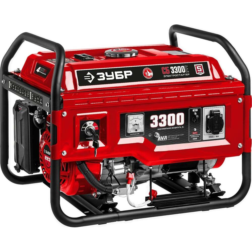 Бензиновый генератор ЗУБР с электростартером, 3300 Вт СБ-3300Е - популярная модель, которая отлично подходит для резервного питания загородного дома. Максимальная мощность всех подключенных к станции устройств не должна превышать 3 кВт (учитывая пусковые значения). Наличие системы контроля напряжения AVR гарантирует стабильность характеристик. Генератор оборудован одной розеткой 220 В. Рама из качественного металлического профиля и наличие демпферных подушек обеспечивает устойчивость электростанции и низкий уровень вибраций во время работы.