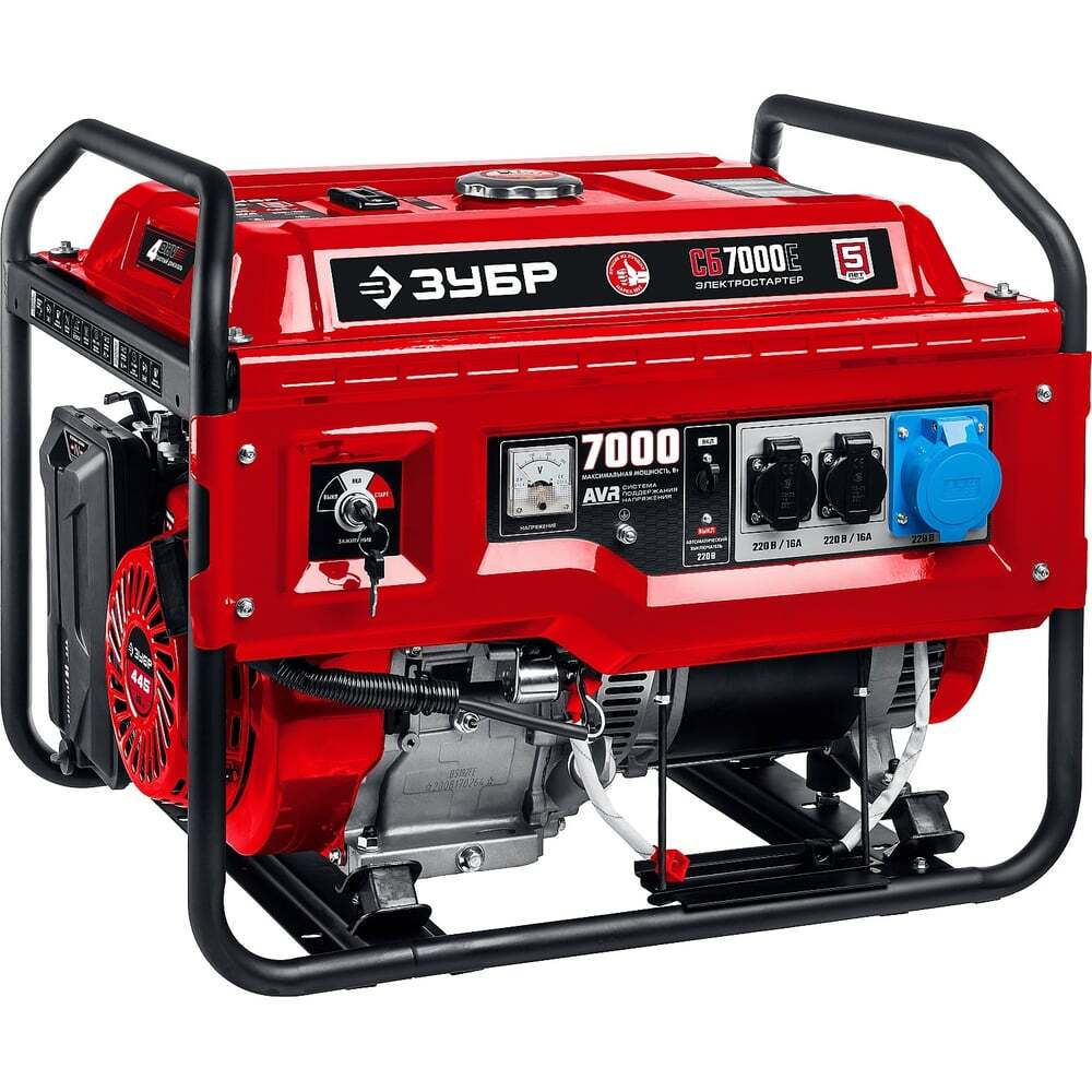 Бензиновый генератор с электростартером ЗУБР 7000 Вт СБ-7000Е имеет типовую компоновку с верхним расположением бензобака и прочной стальной рамой. Такая конструкция обеспечивает безопасность в использовании и упрощает обслуживание. Раму также можно использовать при транспортировке генератора. Модель подойдет в качестве дополнительного источника питания для частного дома или небольшой мастерской. Открытый кожух облегчает осмотр и проведение диагностических работ. Также позволяет быстрее отводить тепло. В результате топливный бак не нагревается при многочасовом функционировании. Масляная и топливная система раздельны - это позволяет не думать о пропорциях топливной смеси. Электростартер существенно облегчает запуск.
