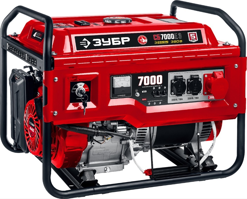 Бензиновый генератор ЗУБР СБ-7000Е-3 — оптимальное решение для автономного энергоснабжения на стройке, в загородном доме, на даче или при временном отключении электричества. С выходной мощностью до 7,0 кВт он способен обеспечить стабильной электроэнергией сразу три мощных потребителя.