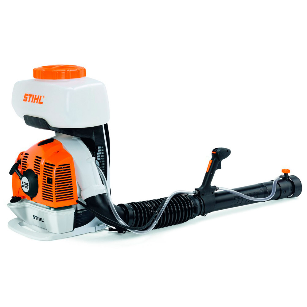 Ранцевый опрыскиватель Stihl SR 430 предназначен для распыления разных веществ. Объем бака 14 л позволяет обрабатывать большие площади. В комплекте 3 сетки для формирования разных типов струи — конусообразной, отклоненной и разделенной.