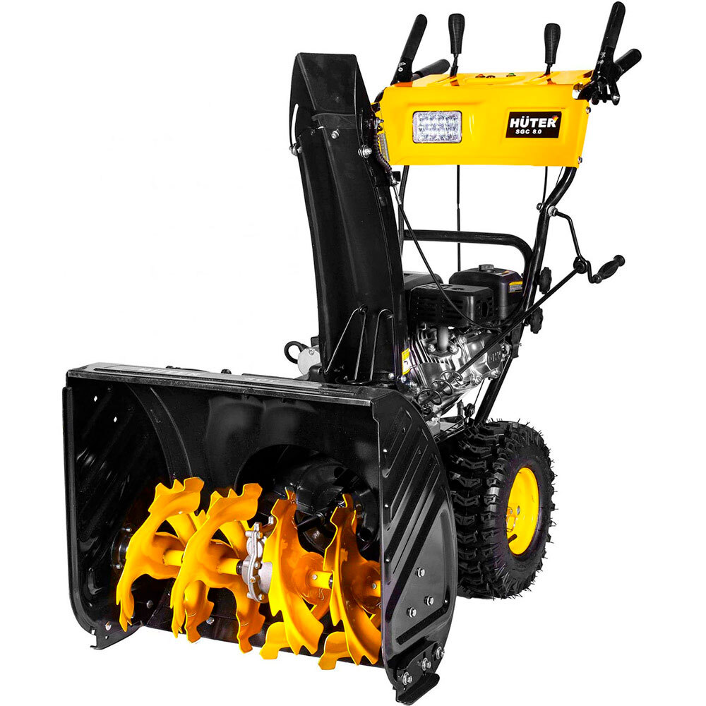 Бензиновый снегоуборщик Huter SGC 8.0 оснащён электростартером от сети 220В, который помогает легко запускать снегоуборщик даже после длительного нахождения на улице. Металлический шнек измельчает слежавшийся и обледенелый снег, а ручка регулировки даёт возможность изменять сторону выброса во время движения. Яркая фара создаёт комфортные условия для работы на плохо освещенных территориях. Колёса оснащены протекторами, что позволяет им не скользить по льду. Модель имеет максимально количество передних скоростей: 6 вперед и 2 назад.