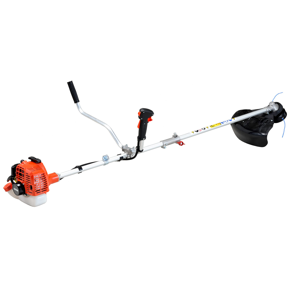 Инструмент оснащен бензиновым двухтактным двигателем мощностью 670 Вт. Система ES-start позволяет быстро запустить двигатель. Частота вращения шпинделя 10000 об/мин помогает справляться с густой и слежавшейся травой. Объем топливного бака 0,45 л и низкий расход бензина 0,62 л/ч позволяют обрабатывать участки средней площади без дозаправки.