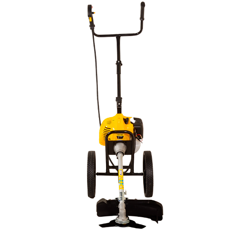 Бензиновый триммер Huter GGT-2900W предназначен для тяжелых интенсивных работ, в том числе на неровных поверхностях, имеет разборную металлическую катушку с леской, диск 3Т, колеса диаметром 300мм, все это в совокупности помогает этой модели справляться с высокой и плотной травой, небольшими кустарниками и прочими густыми порослями.