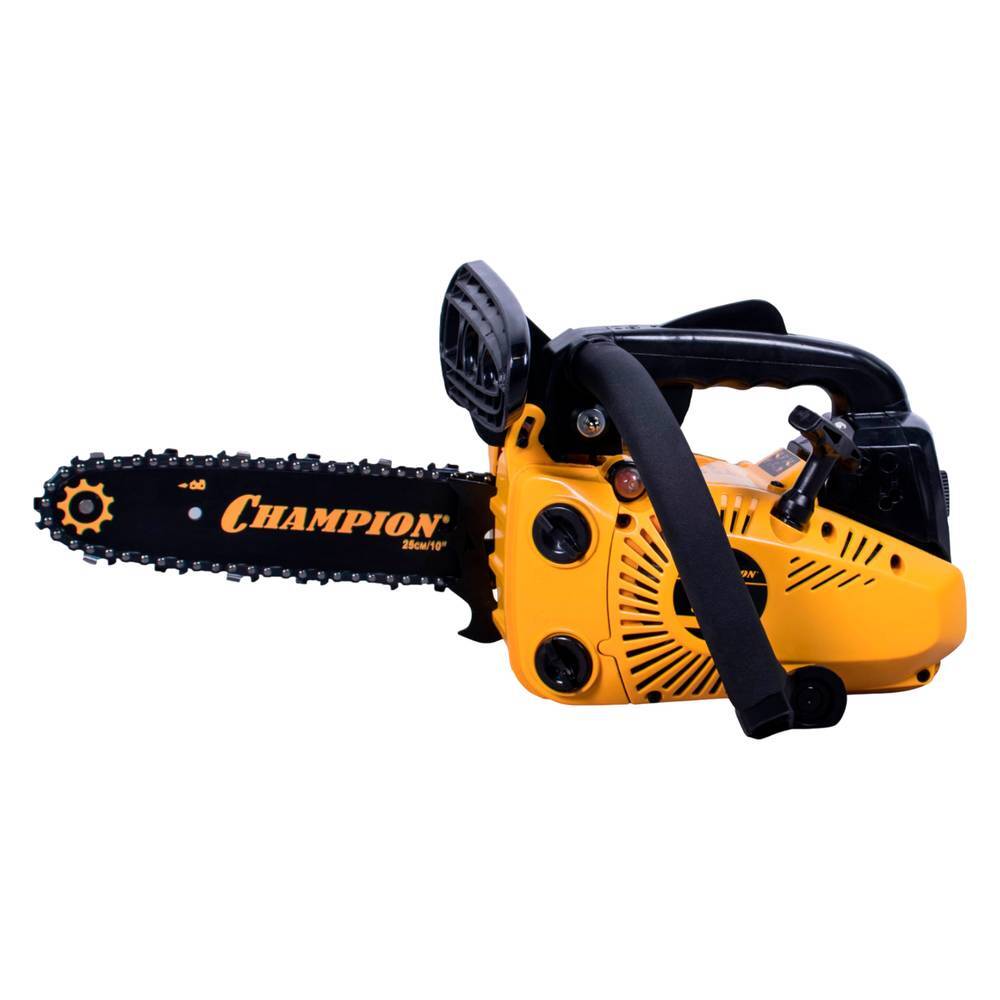 Бензопила Champion 125T-10 предназначена для использования в домашнем или приусадебном хозяйстве в таких общих областях применения, как расчистка зарослей кустарника, обрезка ветвей, распиливание дров и т. д. Для повышения безопасности в данной модели предусмотрены цепной тормоз для мгновенной остановки цепи при отскоке, который также является щитком для зашиты руки оператора. Благодаря специальной конструкции данной пилой можно работать одной рукой. Страховочный ремень предотвратит падение инструмента при работе на высоте.