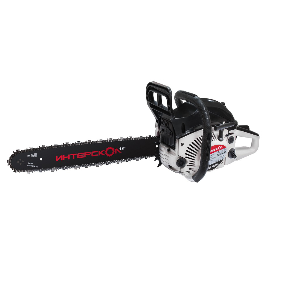 Бензопила цепная ИНТЕРСКОЛ ПЦБ-18/45Л используется для пиления древесины при выполнении работ в приусадебном хозяйстве и частном домовладении, а также строительных, садовых и лесохозяйственных работ (распиловка дров, обрезка сучьев). Пила оснащена всеми необходимыми системами безопасности, стартером с функцией легкого пуска, праймером. Двухтактный двигатель воздушного охлаждения работает на смеси бензина с октановым числом от 92 и двухтактного масла.