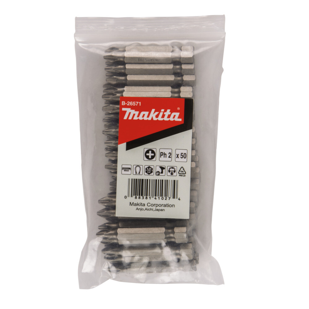 Бита Makita E-form PH2x50мм 50шт (B-26571) - отличный выбор для универсального применения. Биты тип «Phillips» предназначены для для заворачивания/выворачивания шурупов и саморезов.