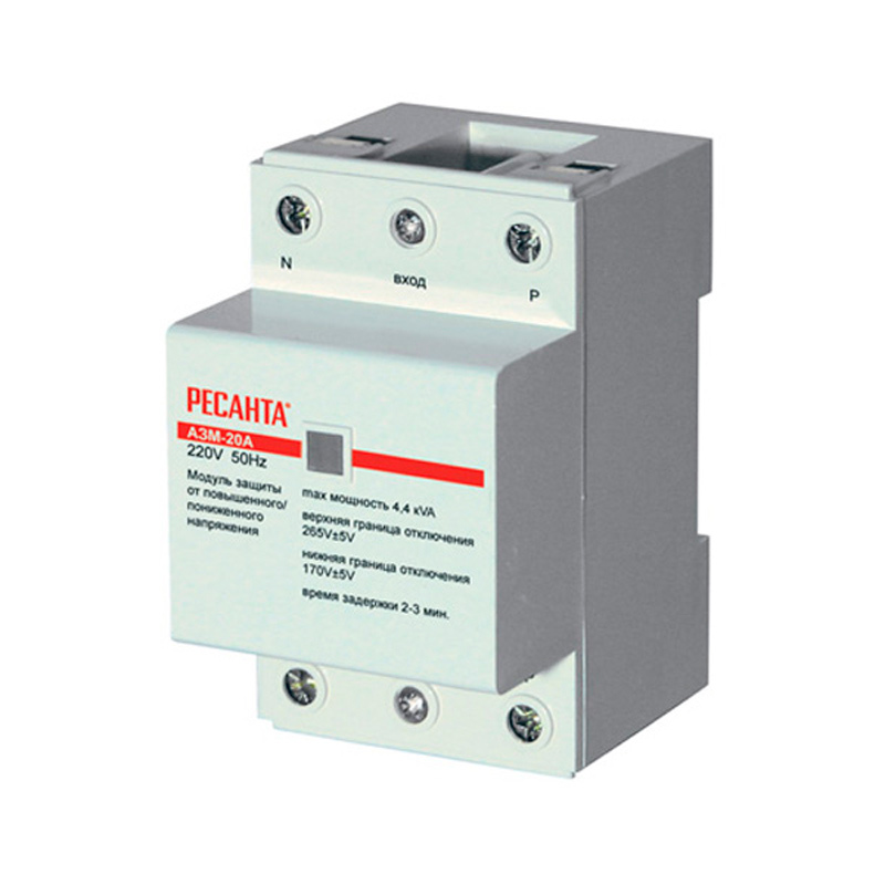 Блок защиты по напряжению "Ресанта" 40A – автоматическое устройство защиты оборудования от перепадов напряжения в сети. Суммарная мощность потребителей энергии 6,6 кВт. Отключает потребителей энергии при повышении напряжения более 265 В и падении ниже 170 В. Включение потребителей сети производится автоматически при стабилизации напряжения в диапазоне от 170 до 265 В. Выключение и включение осуществляется электромеханическим реле с контактом на 30 А, 250 В. Потребляемый блоком защиты ток 40 А. Изделие имеет защиту IP20. Номинальные параметры электросети 220 В, 50 Гц.
