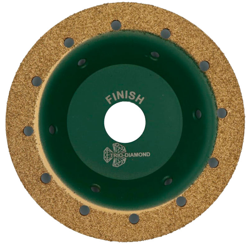 Чашка шлифовальная Trio-Diamond Grand шаг 5 Finish 125мм (390005) применяется для обработки мягкой и твердой древесины, песчаника, пластмассы, стеклопластика, газобетона, силикатного кирпича. Алмазная чашка с карбид вольфрамовыми напайками и плоской формой рабочей кромки предназначены для грубых и деликатных шлифовальных работ, а также для создании художественных эффектов на поверхности материала.