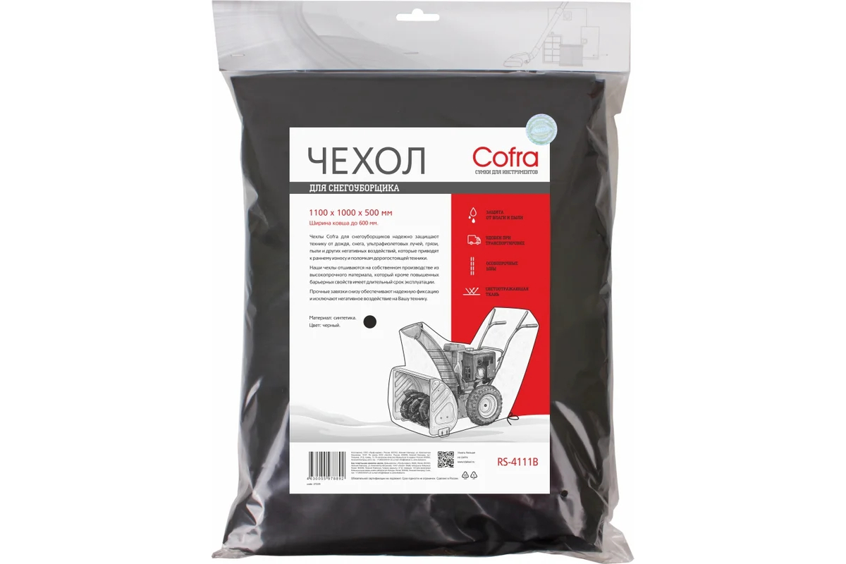 Благодаря чехлу можно защитить устройство от пыли и влаги, что является важной деталью для поддержания его в отличном состоянии во время хранения. Чехол подходит для снегоуборщиков с шириной ковша до 600 мм и длиной 1000 мм, обеспечивая плотное и надежное покрытие всей конструкции.