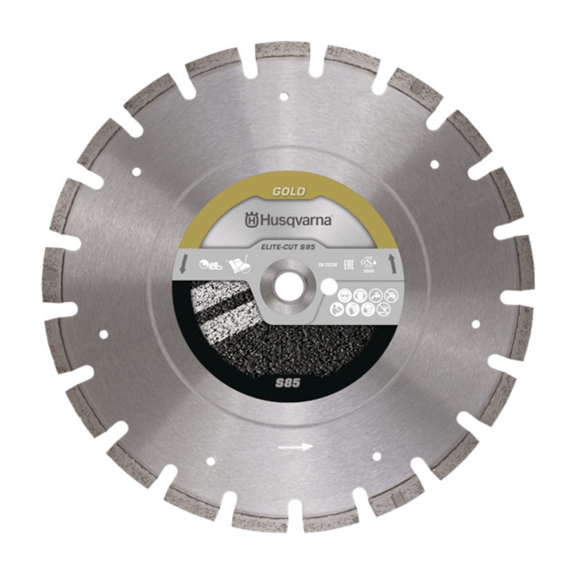 Диск алмазный Husqvarna ELITE-CUT S85 450x25.4мм (5798095-50) оптимально подходит для резки асфальта. Допустимо использование для резки кирпича, незатвердевшего бетона.