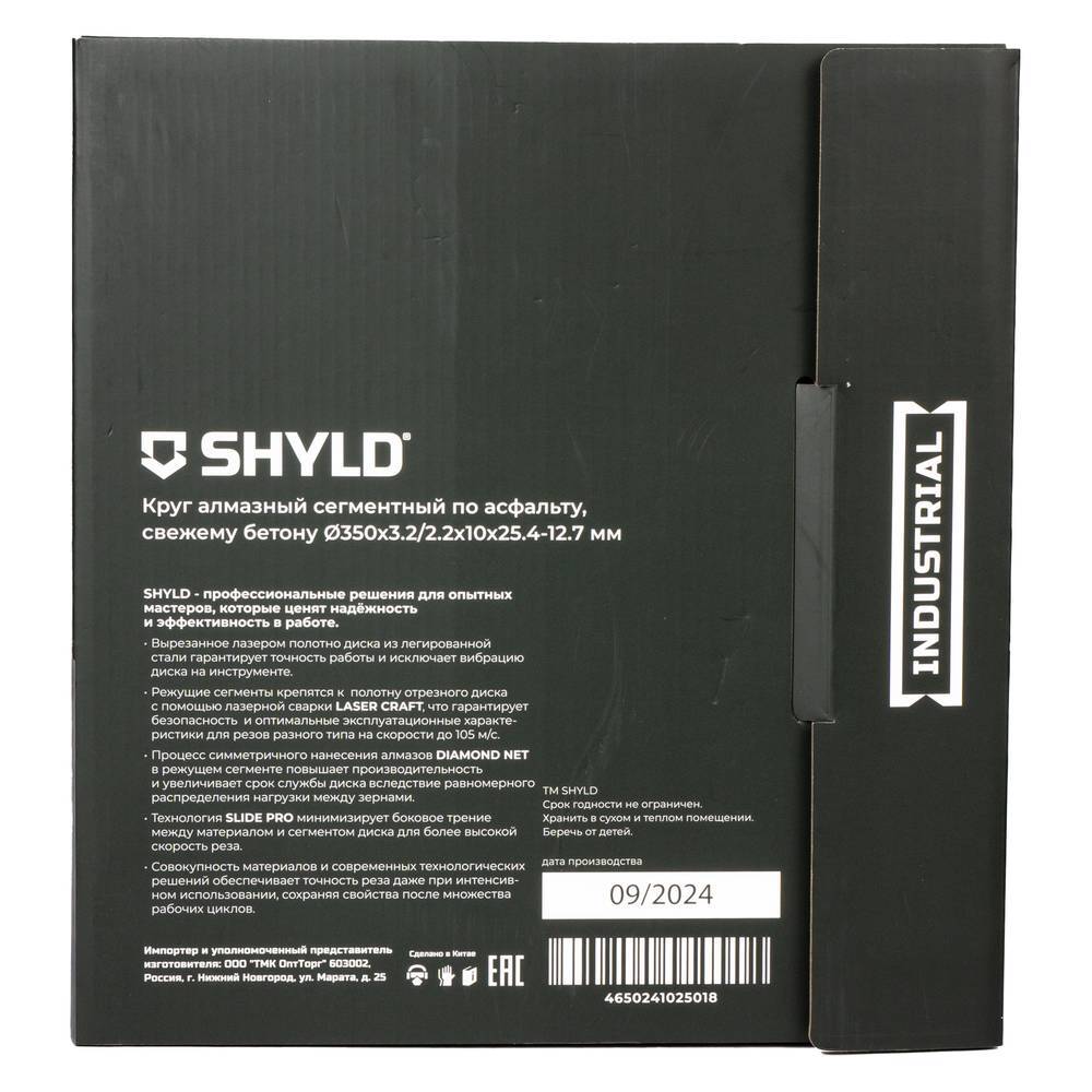 Диск алмазный по асфальту и свежему бетону SHYLD 350х25.4мм (30410) устанавливается на бензорезы и швонарезчики и используется для влажной резки асфальта и свежего бетона. Корпус круга сделан из высококачественной стали и сохраняет свою геометрию на протяжение всего срока службы диска. Сегментная рабочая поверхность не склонна к короблению от высоких температур, возникающих при резании. Промежутки между сегментами способствуют лучшему охлаждению и отводу шлама. Совокупность высококачественных материала и современных технологических решений обеспечивает точность реза даже при интенсивном использовании, сохраняя свойства после множества рабочих циклов.