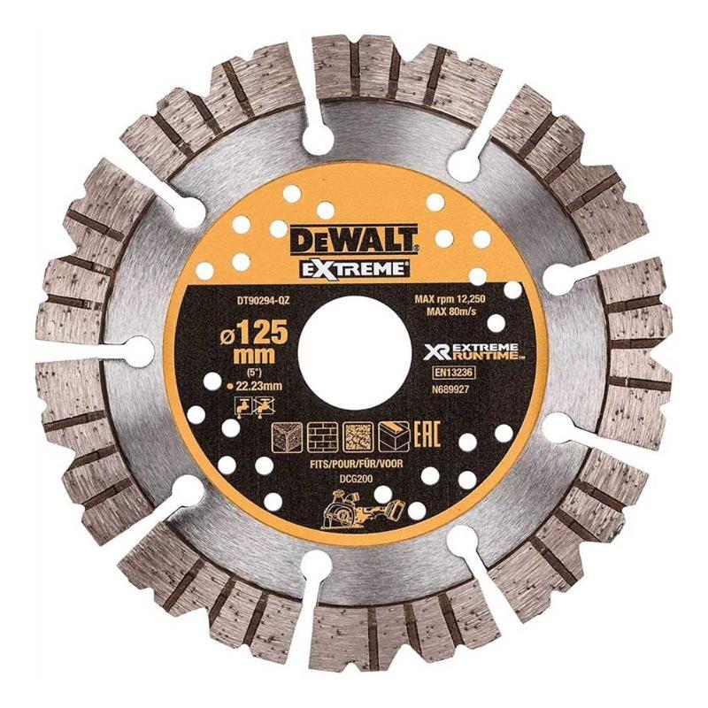 Оригинальный алмазный сегментный диск ø125 мм для штробореза DeWALT DCG200NT, совместим с множеством других аналогичных моделей разных производителей, а также с угловыми шлифмашинами.