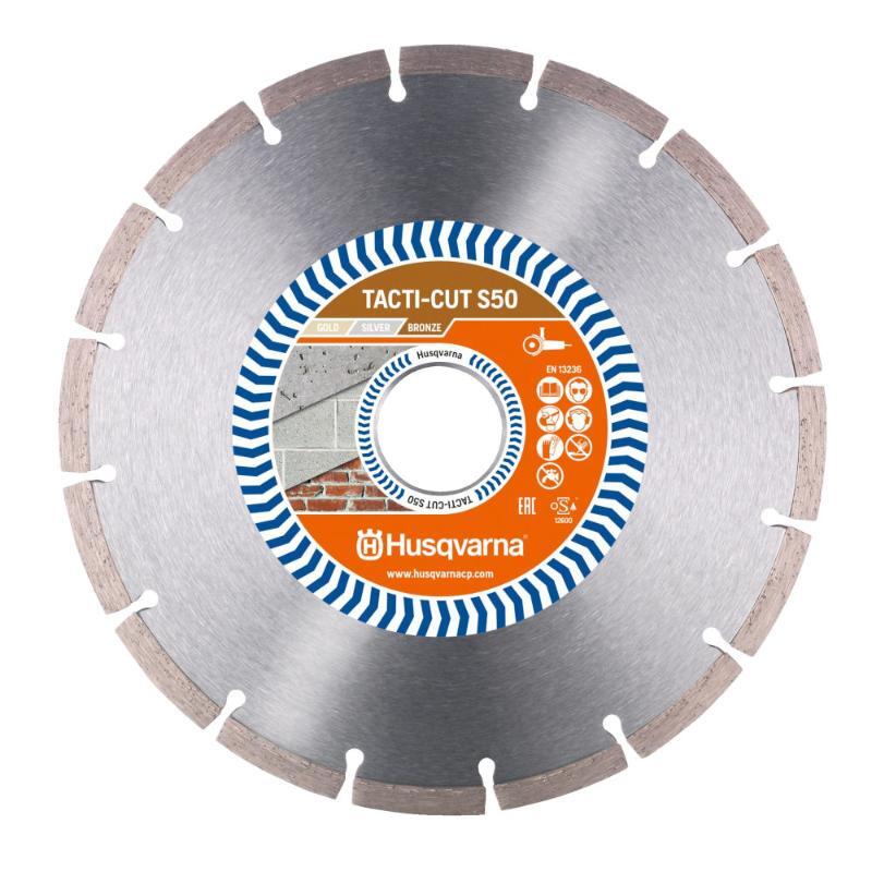 Диск алмазный по бетону и кирпичу Husqvarna TACTI-CUT S50 230x22.2мм предназначен для резки бетона, армированного бетона, кирпича, также допустима резка природного камня.
