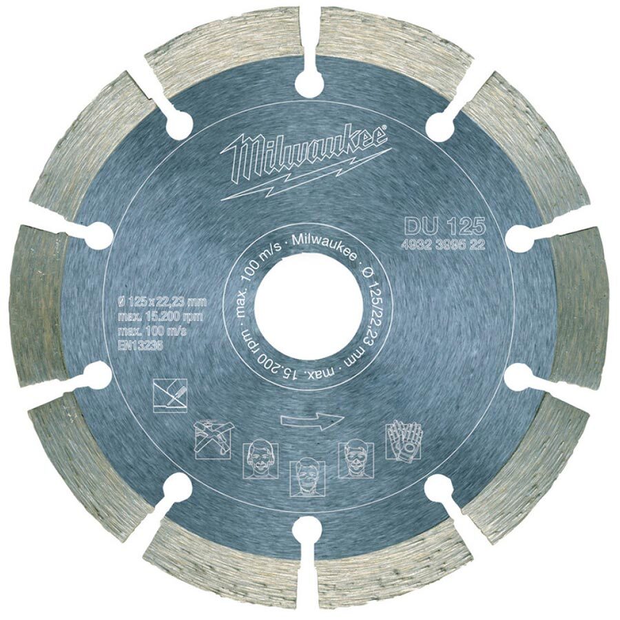 Диск алмазный по бетону и кирпичу Milwaukee DU 125х22.2мм (4932399522) обеспечивает быстрый рез в различных строительных материалах.