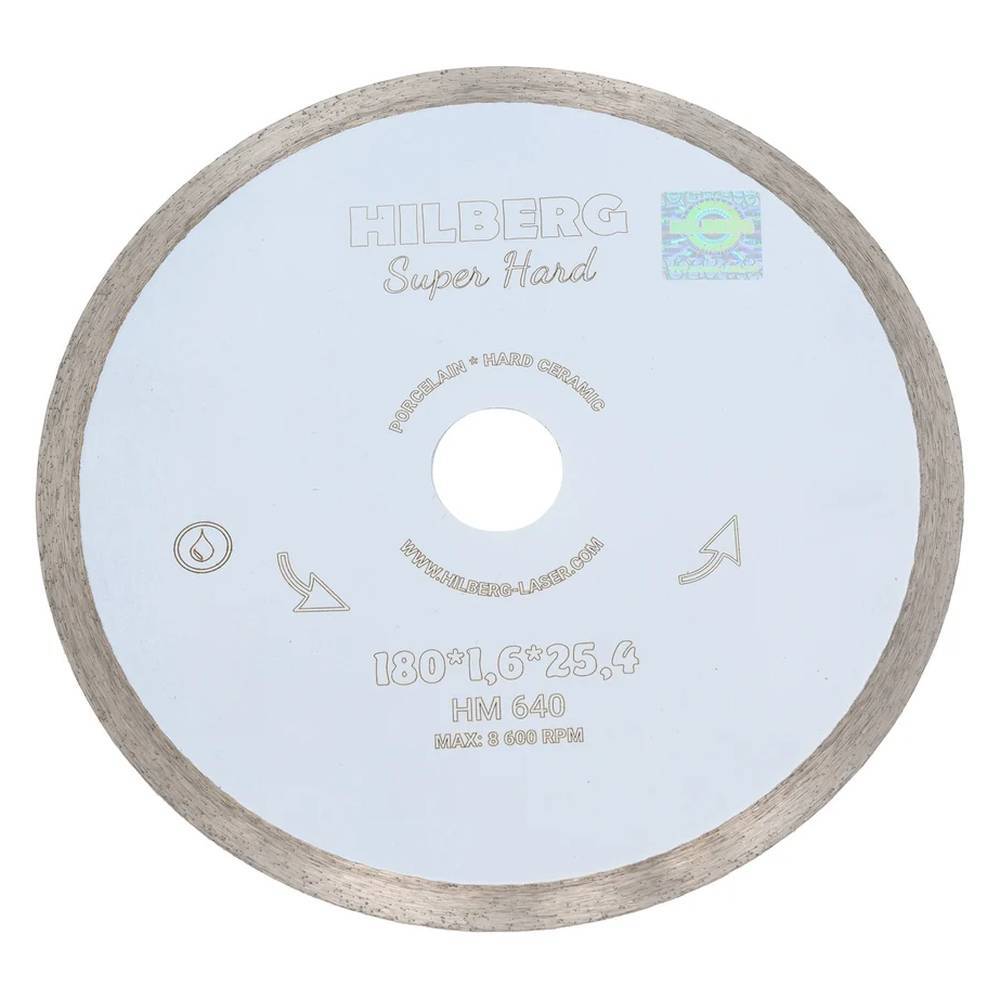 Диск алмазный по керамограниту Hilberg Super 180х25.4мм (HM640) изготовлен методом горячего прессования. Используется для резки керамогранита и твердой керамики с применением водяного охлаждения. Толщина алмазного слоя 1.6мм, а высота 8 мм. Посадочное отверстие - 25.4мм. Ультратонкая кромка обеспечивает чистый рез без сколов. Диск подходит для работы на камнерезных и плиткорезных станках.