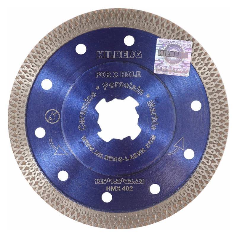 Диск алмазный по керамограниту и керамике Hilberg Турбо 125*22.2мм (HMX402) предназначен для сухой и влажной резки керамической плитки и керамогранита. Благодаря ультратонкой Х-образной режущей кромке толщиной 1.2мм и утолщению на корпусе диска достигается чистый рез без сколов при высокой производительности. Диск подходит для угловых шлифовальных машин с посадочным шпинделем М14 (22,23мм) и оснащёнными быстросъёмной системой крепления.