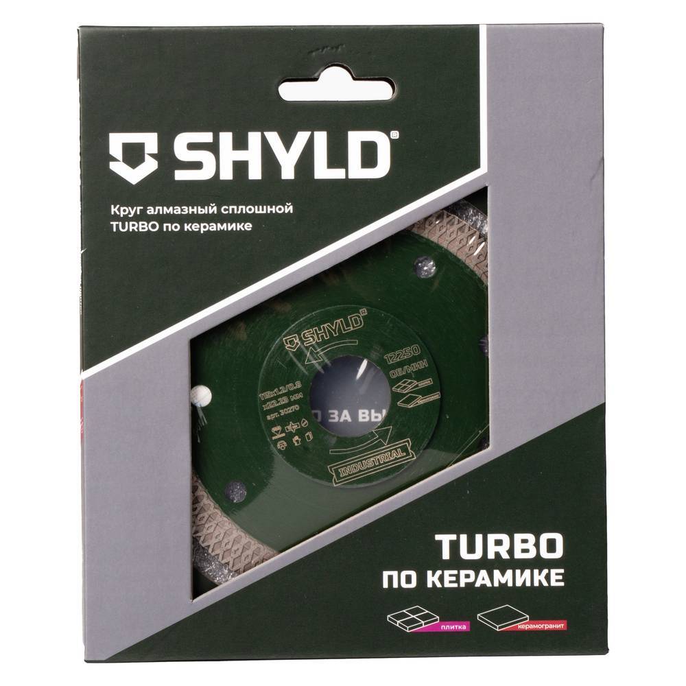 Диск алмазный по керамограниту и плитке SHYLD TURBO 115х1.2х22.2мм (30270) обеспечивает быстрый и чистый рез керамогранита и плитки ручным электроинструментом, таким как МШУ. Предназначен для сухого реза. Вырезанное лазером полотно диска из легированной стали гарантирует точность работы и исключает вибрацию диска на инструменте. Автоматизированный процесс спекания PRO FORGED обеспечивает высокое качество оснастки с сегментами разных видов, позволяя добиться высокой производительности и повысить сроки эффективной эксплуатации до 200% по сравнению с обычными дисками. Процесс симметричного нанесения алмазов DIAMOND NET в режущем сегменте повышает производительность и увеличивает срок службы диска вследствие равномерного распределения нагрузки между зернами. Технология SLIDE PRO минимизирует боковое трение между материалом и сегментом для более высокой скорости реза. Совокупность материала и современных технологических решений обеспечивает точность реза даже при интенсивном использовании, сохраняя свойства после множества рабочих циклов.