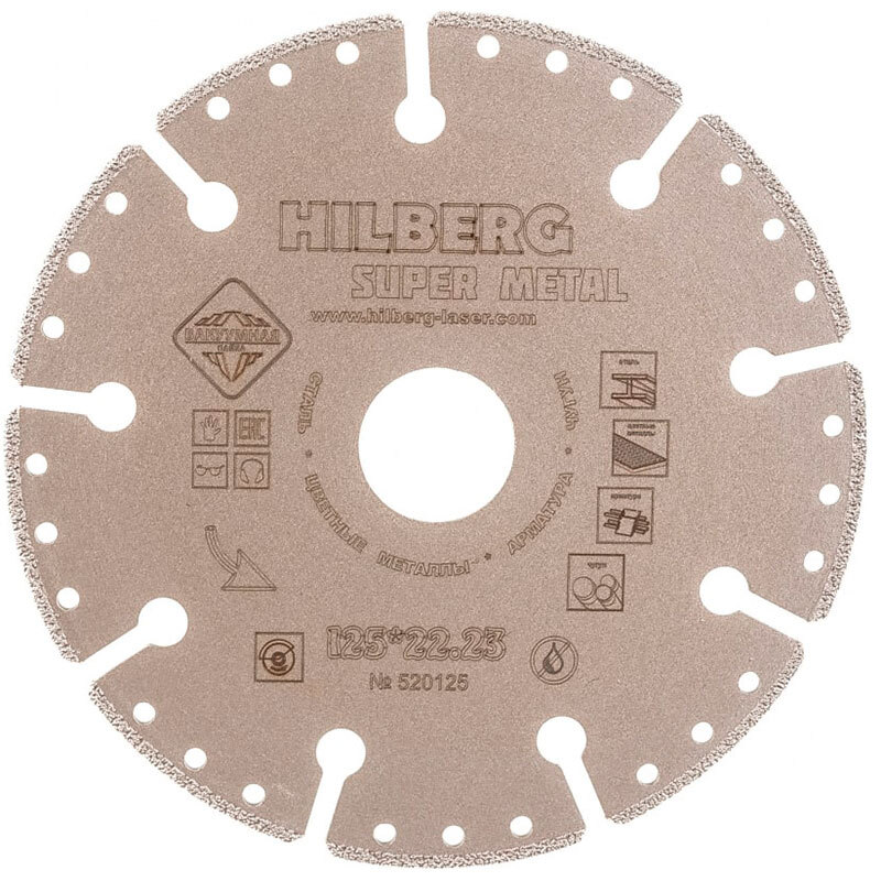 Диск алмазный по металлу Hilberg Super Metal 125x22.2мм (520125) изготовлен методом вакуумной пайки. Используется для резки цветных металлов, чугуна, стали и арматуры. Высота алмазного слоя 10мм. Резка осуществляется как с применением водяного охлаждения, так и без.