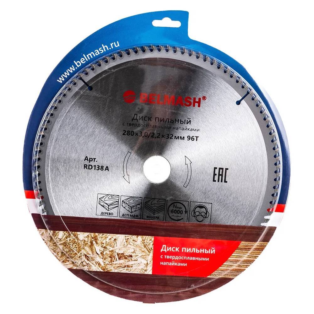 Диск пильный по дереву БЕЛМАШ 280x32/30мм 96T (RD138A) с твердосплавными напайками, которые делают зубья износостойкими, способными сопротивляться повышенным ударным нагрузкам. Предназначен для чистого поперечного и продольного распила древесины, фанеры, МДФ, ДСП, ОСП. Подходит для деревообрабатывающих многофункциональных, циркулярных, форматно-раскроечных станков, дисковых и торцовочных пил. Можно устанавливать на станки BELMASH: СДМ-2200, SDM-2200M, CBS-2400, TSB-2000. Диск соответствует требованиям Технического регламента Таможенного Союза 010/2011 «О безопасности машин и оборудования».